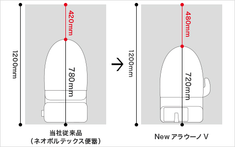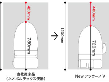 手洗い付きタンクは従来のタンク付きトイレに比べコンパクト。