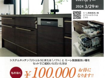 LIXILのシステムキッチンとミーレ製食器洗い機をセットでご成約いただいた方は、