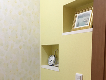 トイレの壁にニッチを設け、小物を飾れるようにしました。
