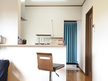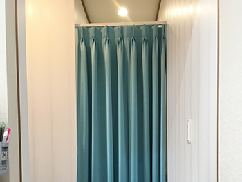 仕切りをカーテンにすることで圧迫感を軽減しました。