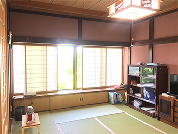 畳を入れ替えました。壁色に合わせたピンクの畳ヘリが効いています。