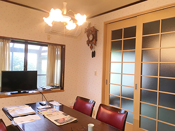 壁紙の貼り替え、引き戸の入れ替えで、明るくおしゃれな空間になりました。