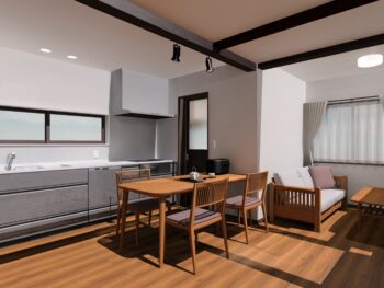間仕切りをなくし、床がフラットなLDKに大変身!窓は遮熱性の高いサッシに交換&西側の窓を小さくしました。キッチン横の勝手口戸は、気密性の高い外部用を採用。床・壁・天井には断熱材を敷き詰め、快適な温熱環境に整えました。