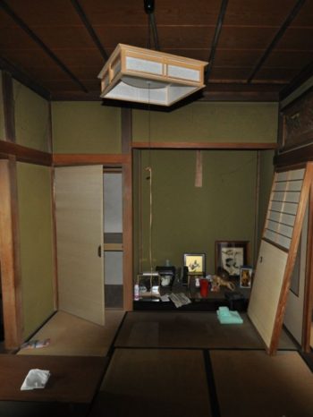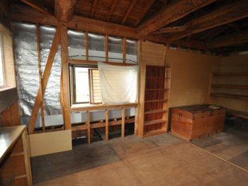 元茶室。藁床の畳は重く、床板も傷んでいました。