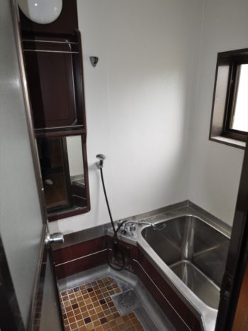 施工前の浴室。0.8坪と少々狭く、3人のお子さんがいるご家庭には心許ないです。