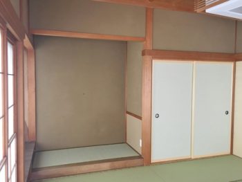 軽く扱いやすいスタイロ畳に入替え、床脇に押入を造作。寝室として使えるようになりました。