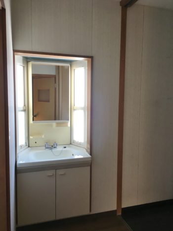 施工前の洗面脱衣室。動線が悪く、洗濯機の場所も、ここから離れた土間にありました。
